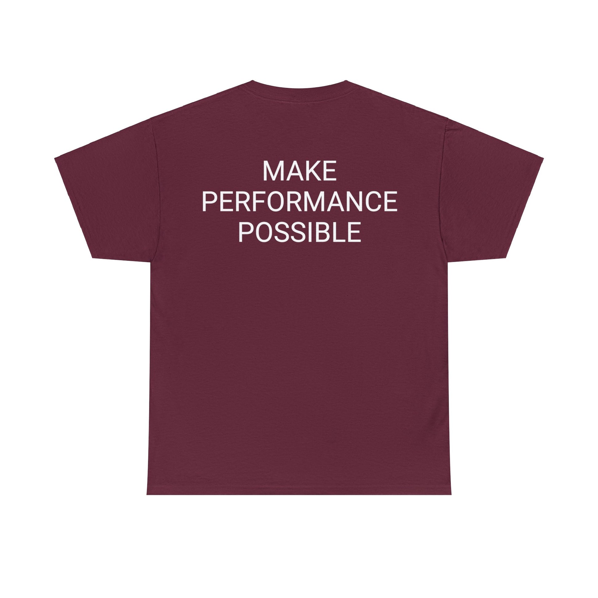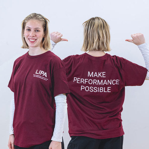 This burgandy t-shirt has the LIPA logo on the front and our motto Make Performance Possible on the back. No side seams mean there are no itchy interruptions under the arms and the shoulders have tape for improved durability.